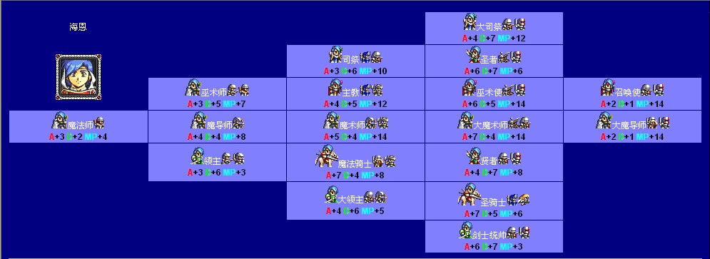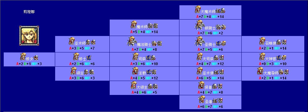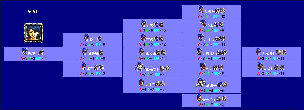 转职表和海因很相似。建议第一遍转成大魔导士,继承前生的职业,也比较实用。召唤使做第二次转职的选择。