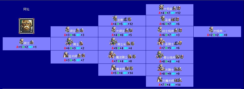 啊伦:没用的大统帅路线(因为大统帅没有指挥范围,带冰没有防御攻击提成):战士-领主-大领主-战士统帅-大统帅