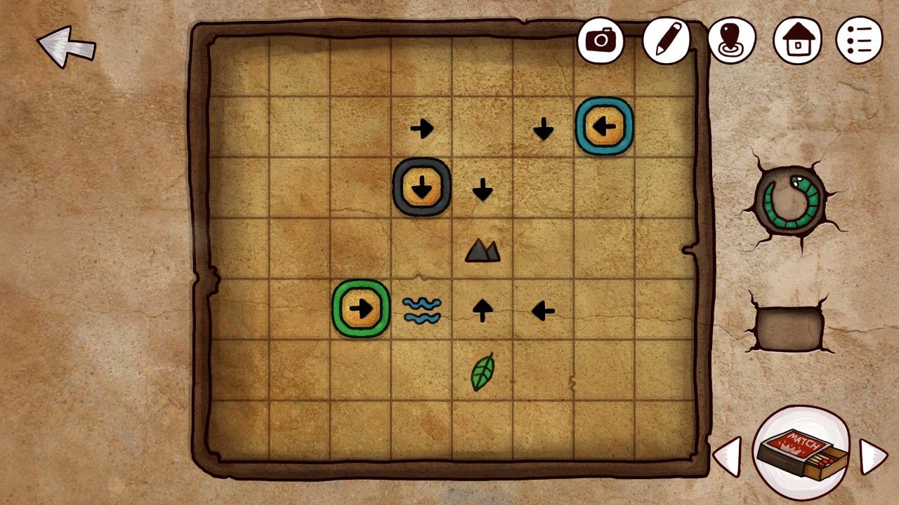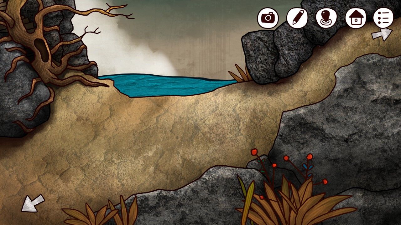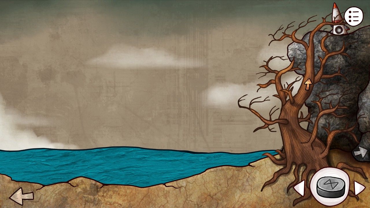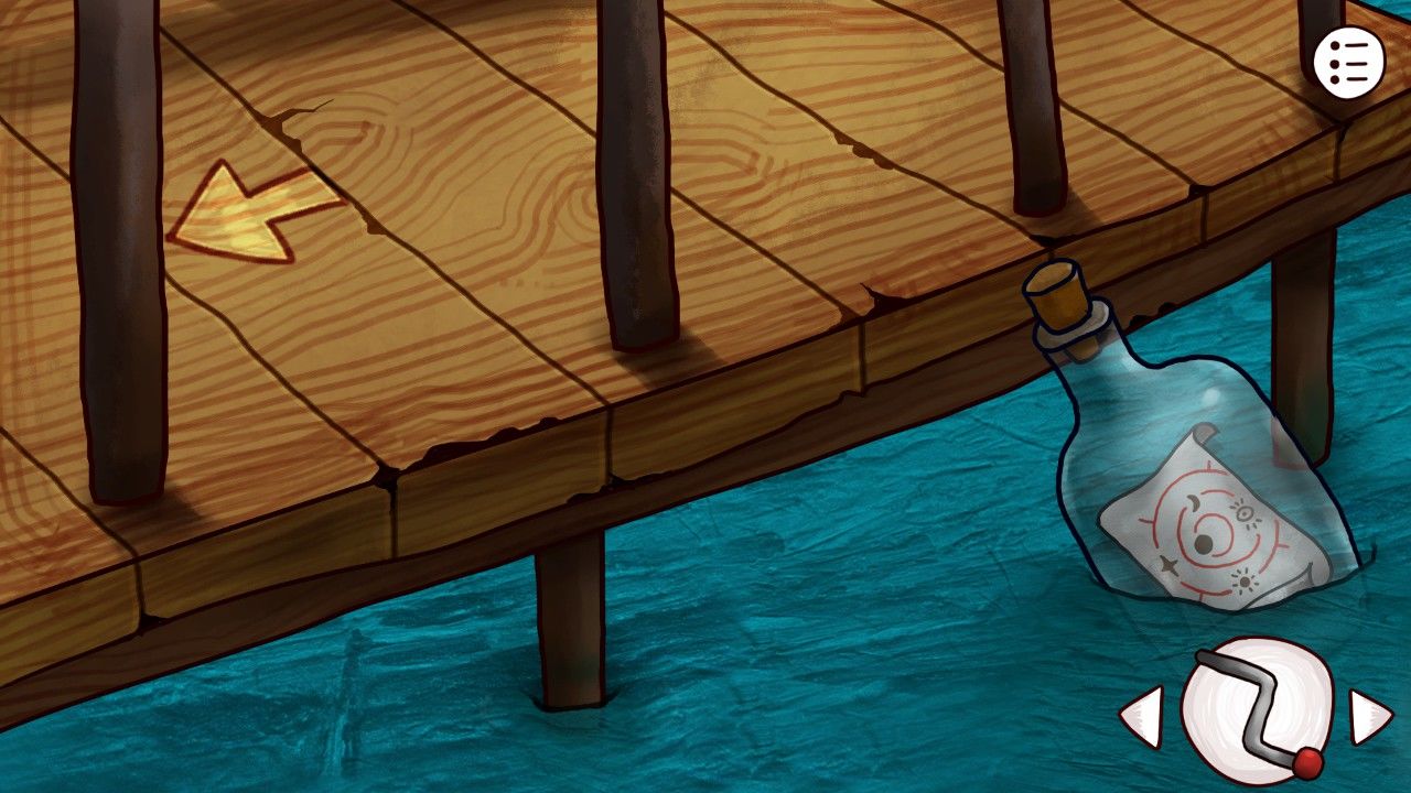 打开信箱,看到了婆婆心心念念的船票就躺在中间,激动的你当下就决定回去给婆婆看,共同分享这个激动人心的时刻;然而,临近屋口,你又不禁停下了脚步,老爷爷毕生期望都还没有实现,如果现在就把船票给婆婆,是不是只会激起她睹物思人的伤感却不会有任何安慰作用呢?好心肠又善良的你,暗下决心,先不见婆婆,但是一定要尽快破开这团迷雾,带着答案一起再来拜访。点击左下角的箭头,你开始继续自己在小岛上的旅程。在向下行进几步之后,细心的你发现这里有一株高大的树,在粗大的枝干掩映中,若隐若现的是一条向上前进的道路,好奇的你决定走近瞧瞧。点击古树