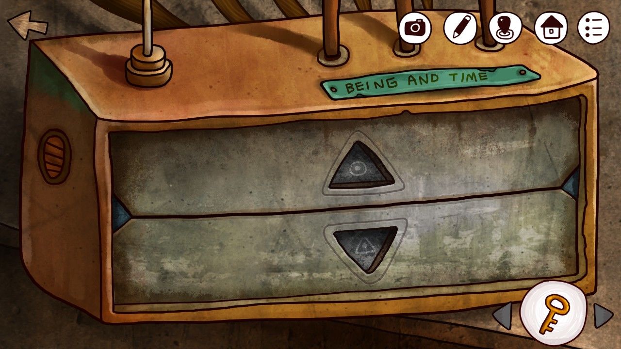 哦豁,开关还需要两个奇奇怪怪的石头才能打开,所以你暗下决心,如果以后的旅程中能够碰到这样子的石头,绝对不会错过。离开小屋,果不其然,矗立在屋口的正是婆婆提到过的信箱,虽然是锁着的,但是刚好你的手上也有一把钥匙,不妨试试?点击钥匙再点击信箱的锁来使用。