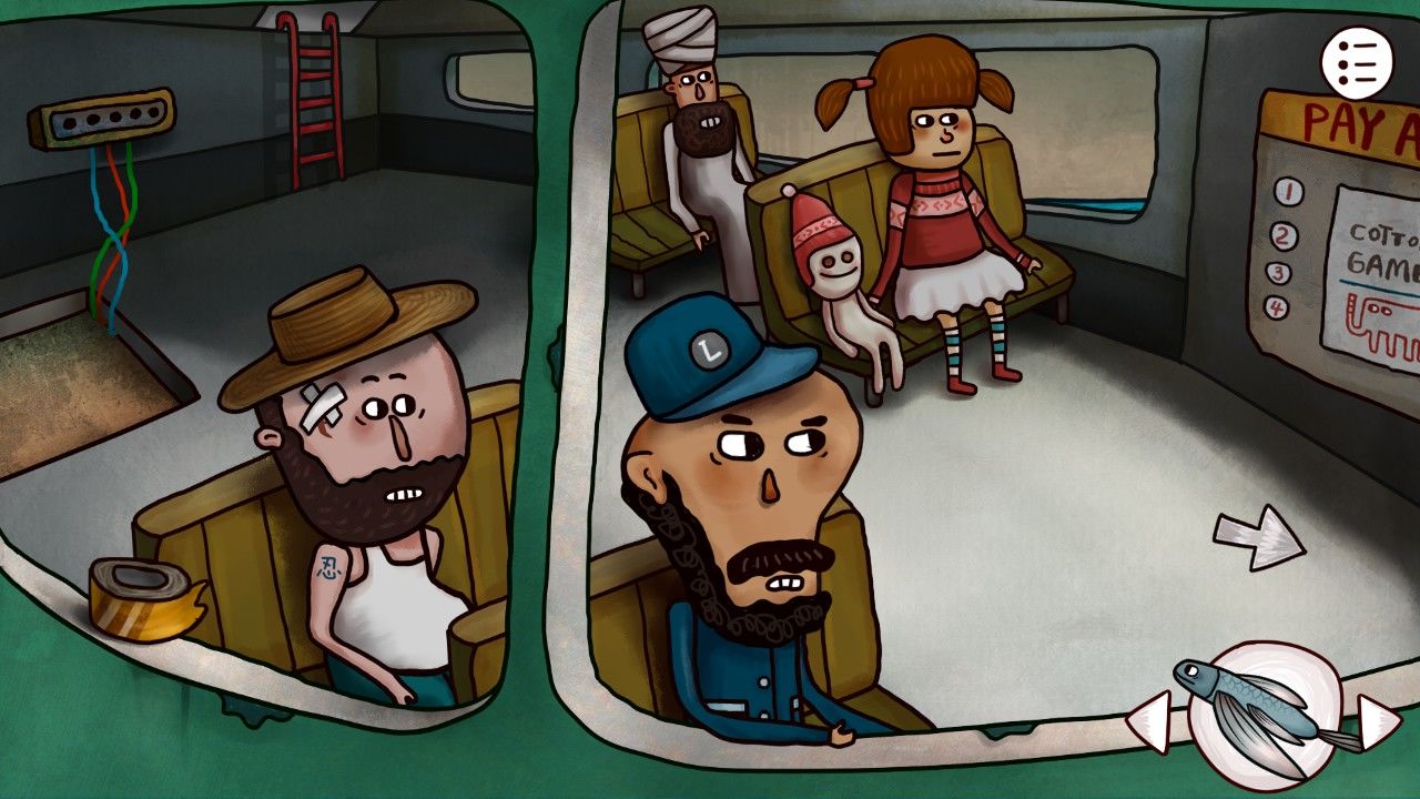 哦豁!习惯了超稀疏人口分布的你被眼前这么多人吓了一跳。不过你立刻反应过来,为自己的失礼向每个人打招呼。小女孩告诉你:曾经船长为她办过一个庆祝会,时间是:3:42;管理员说:1.船舱底有条大鱼;2.楼上陈列的鱼渴望鱼饵;剩下两个过客富有思想的话语也让你感触颇深,忽然你看到窗边的胶带快被风吹落,于是热心肠的你立刻捡起来放到了自己的口袋里。想到工厂坏掉的机器,也许这个胶带能把断开的电线拼接起来吧。点击梯子上到二楼。
