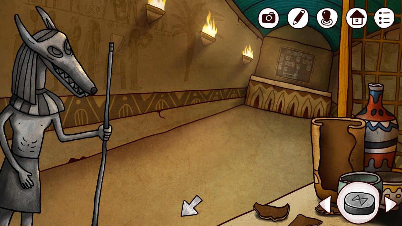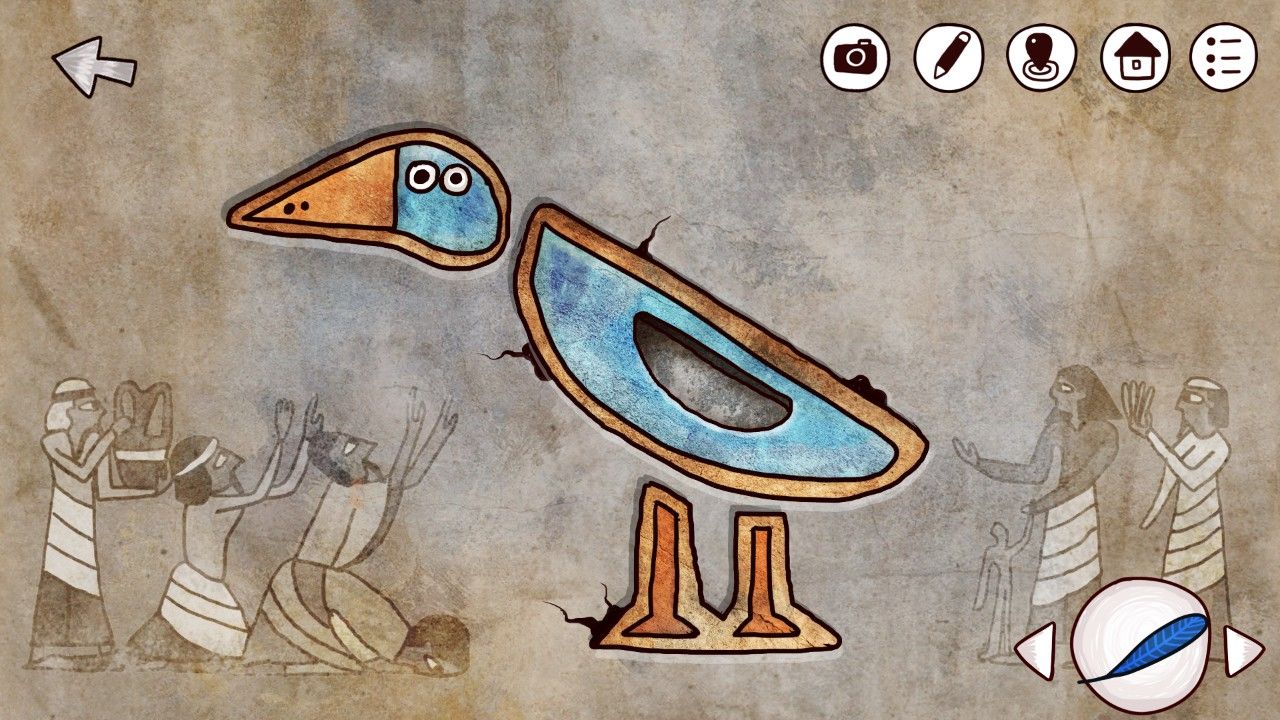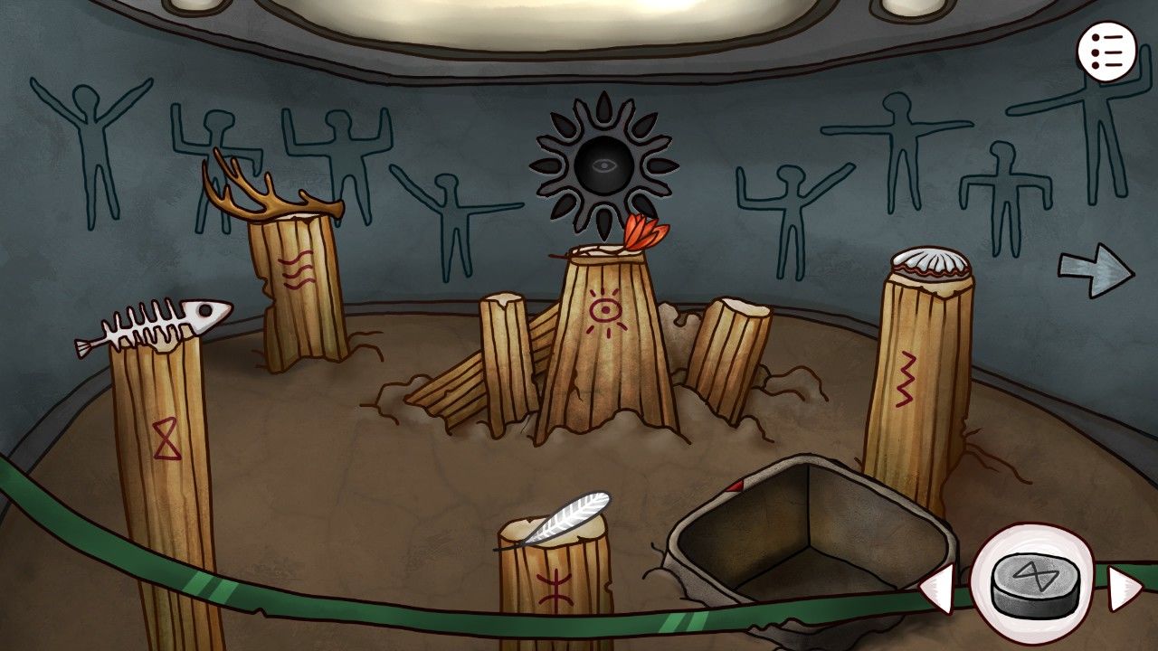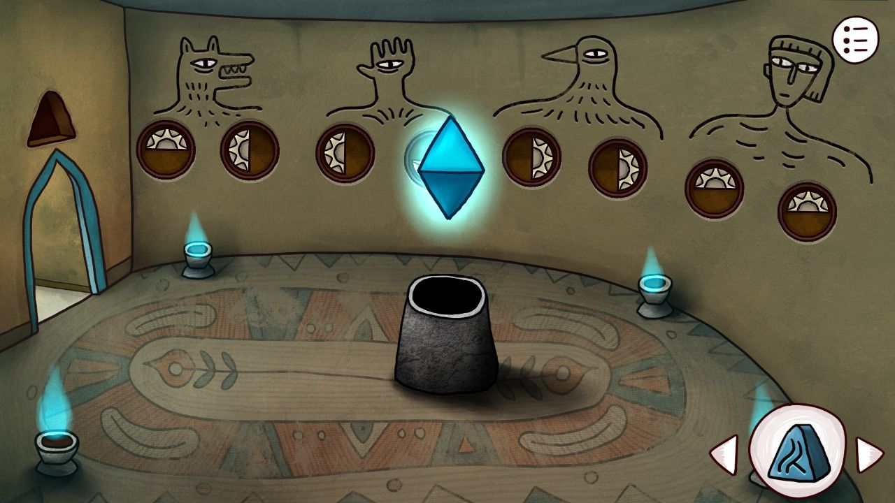 点击右边的陶罐,多次点击破碎之后取出中间的石饼,取出之前剖开大鱼得到的矛头,安在雕塑上的棍尖,轰隆一声,雕塑的嘴张开了,甚至还吐出了一个神秘的蓝珠子,拿走它。靠近前方的墙壁,你看着这奇怪的方块若有所思,觉得自己似乎见过这些东西,啊对了!是我在灯塔得到的拼图碎片!点击拼图块,点击谜题使用。