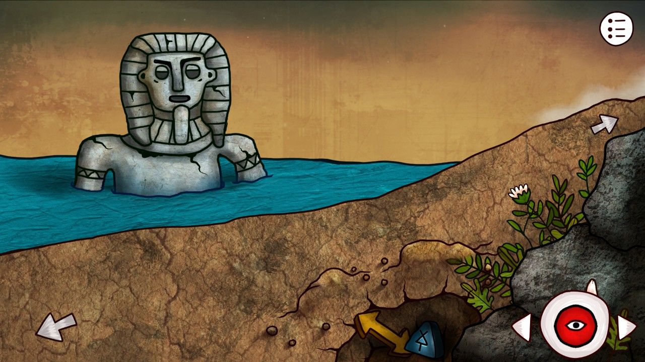 离开神庙,继续下行,海里的神秘雕塑又出现了那诡异的双眼,你掏出刚才的笔记,继续记录下了这一切。正欲离开的你,发现脚下的土地里似乎掩埋着什么东西,你拿出自己带的铲子,挖开土地,发现是一个奇怪的双箭头和又一个神秘的蓝色三角,你捡起了它俩。