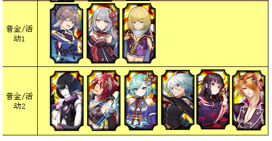 第一行和第二行的区分标准为是否有全体治疗技能以及是否50级有2*2治疗技能。