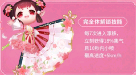 完全体技能:每7次进入漂移,立即获得18%集气且10秒内小喷最高速度+5km/h。