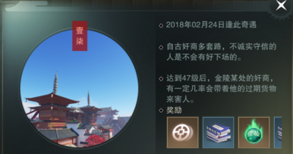 触发条件:人物等级达到46级;路过触发触发地点:金陵城鸡鸣寺后