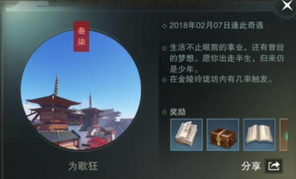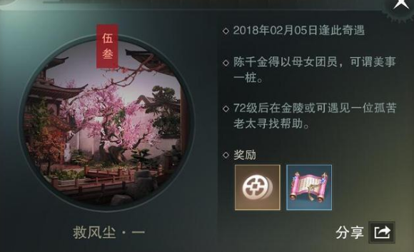 触发地点:金陵三生树对面的房子,需要轻功飞过去