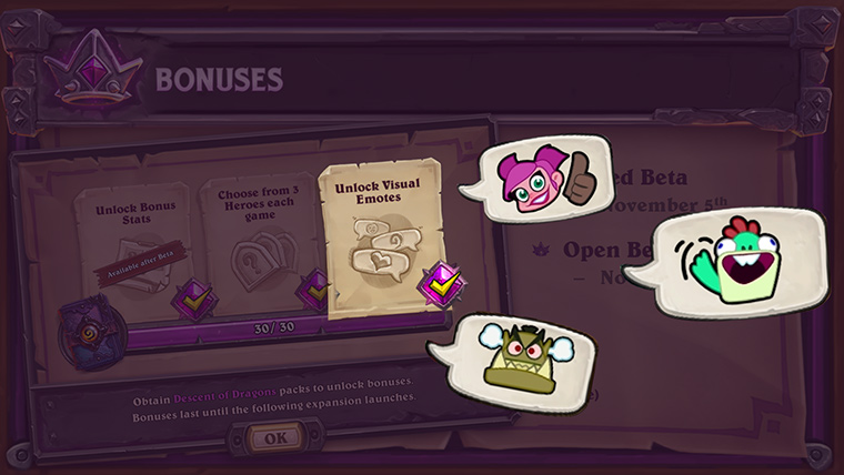 获取了30包卡牌包的玩家将解锁对战中所有人可见的独特酒馆战棋表情!