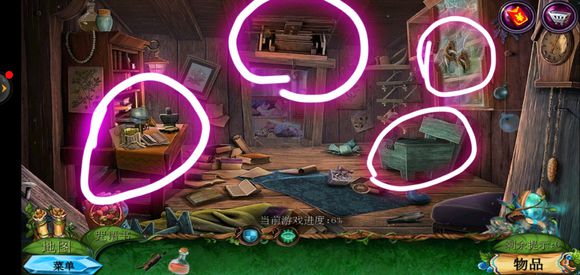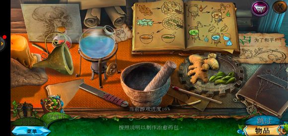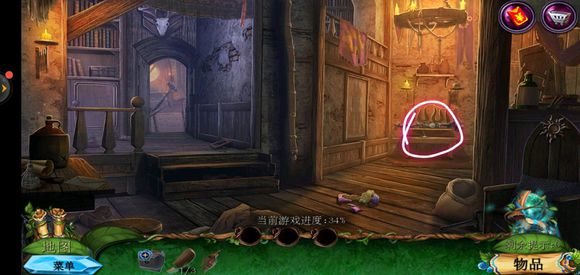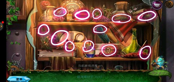 进入房子内部,点击绿色桌子获得药水,玻璃壁橱获得清洁布,完成小游戏获得鼠尾草叶子