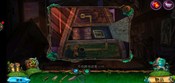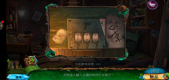 下来到房子内部,点击右边的绿箱子,把符文密码放上去,输入密码,获得圆形嵌入物和毛毯