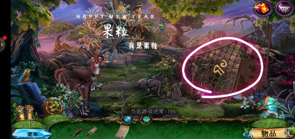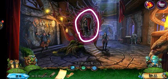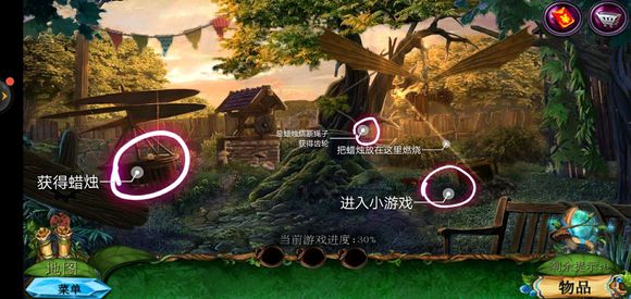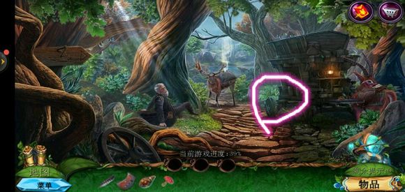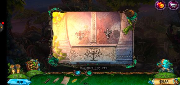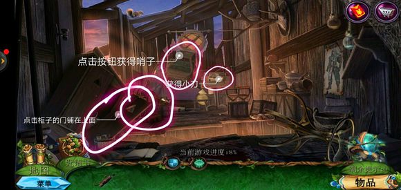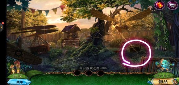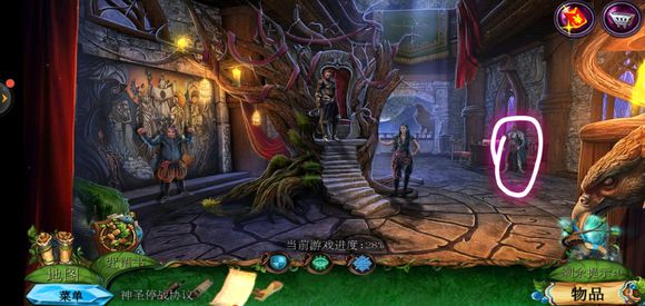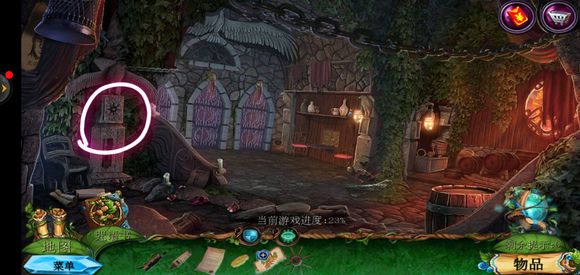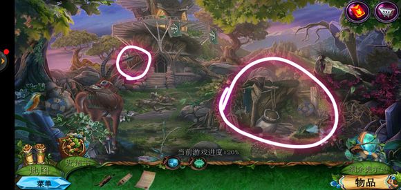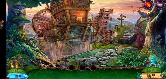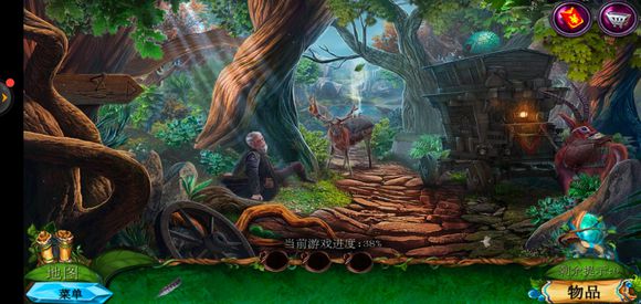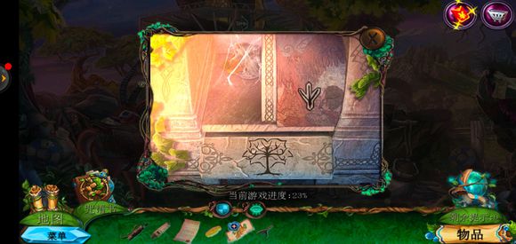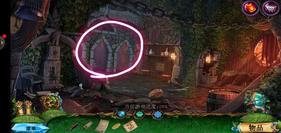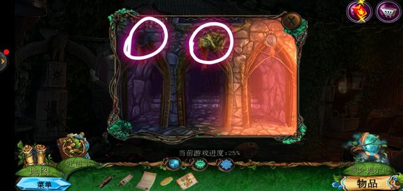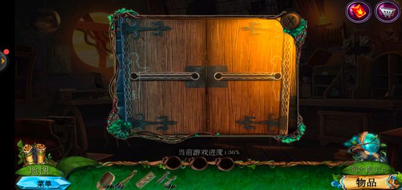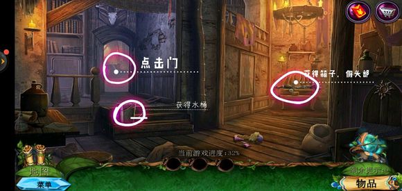 进入巨树,点击门,用海绵擦掉第一扇门的污渍,拿出地图