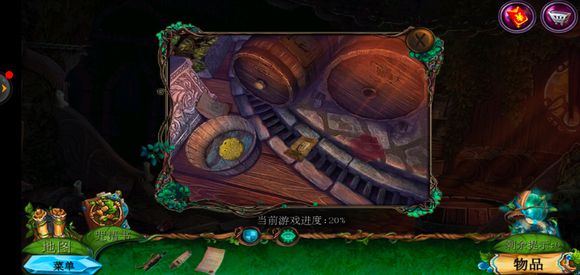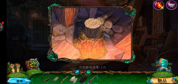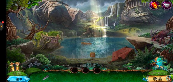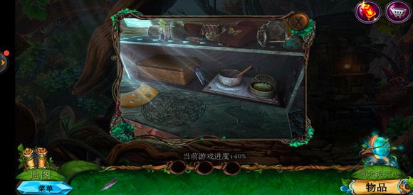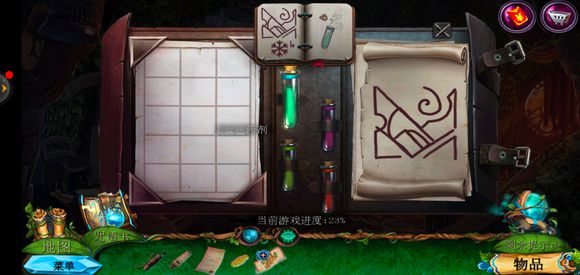点击咒语书,放上蓝色药剂学习冰封咒语,回到巨树左边,使用冰封咒语获得地图