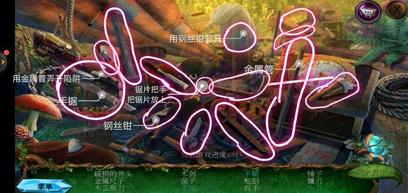 点击车,进入小游戏,完成小游戏获得药台,放上配方和催眠蘑菇,根据配方制作催眠飞镖,飞镖在配方旁边的盒子里面。