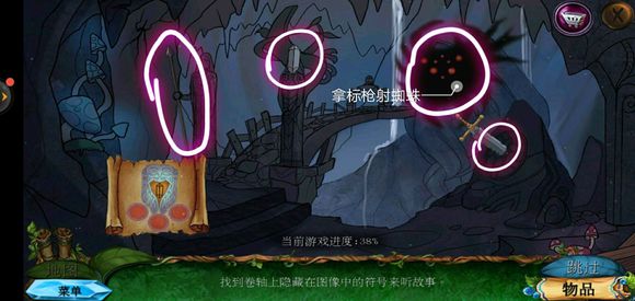 完成小游戏获得咒语,半张地图,爪子型嵌入物