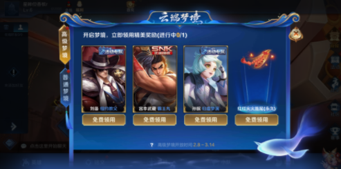 高级梦境全新开启,活动专属皮肤限时领用,完成每周任务收集星光,筑梦成功还可永久拥有!
