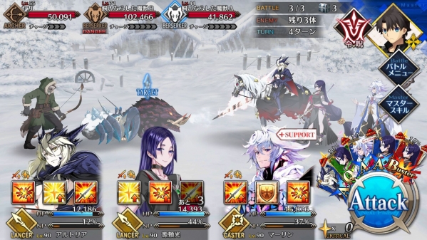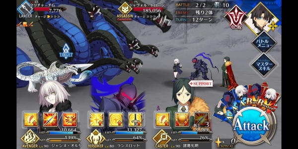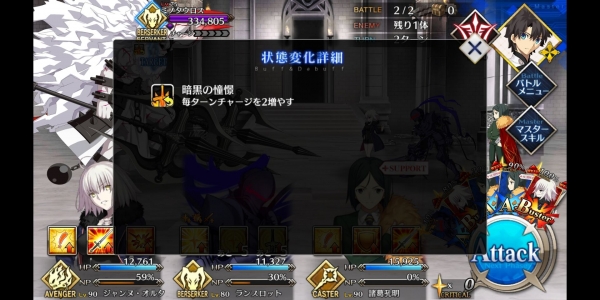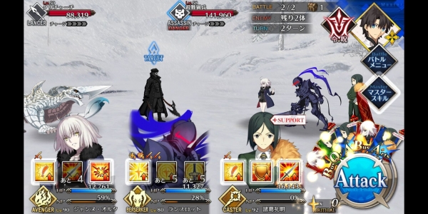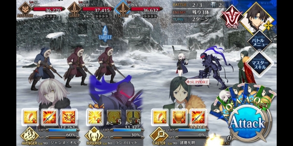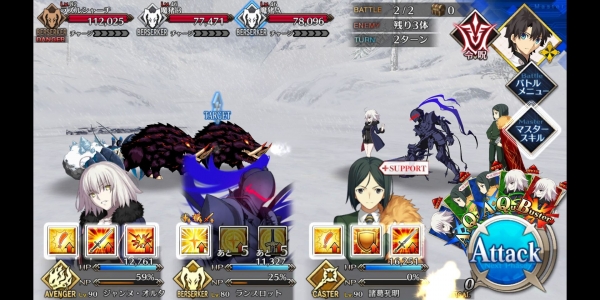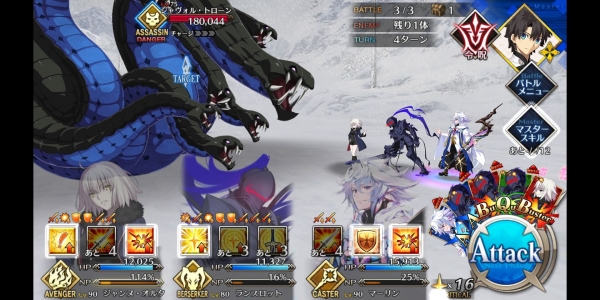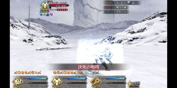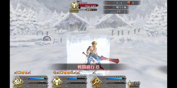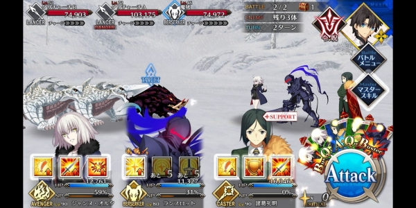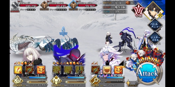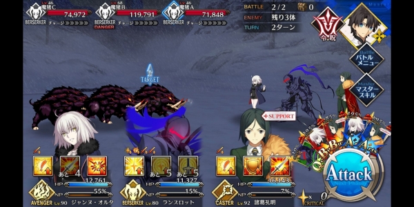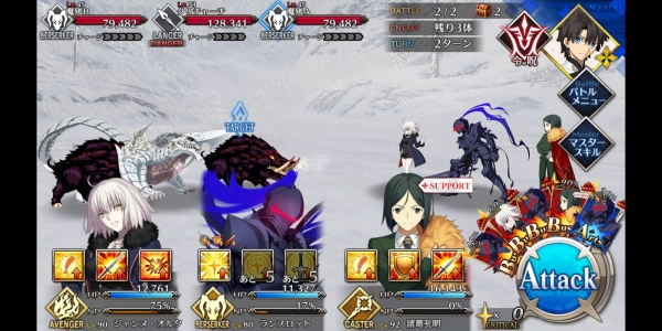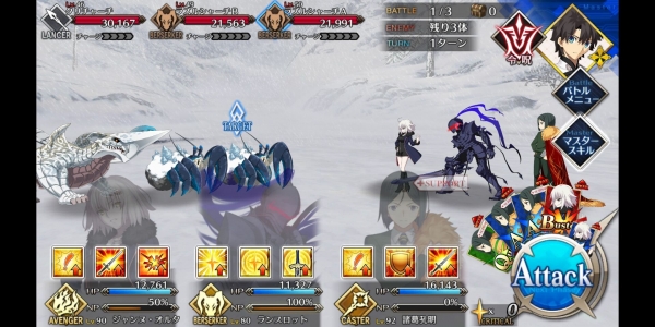 ②第二管HP耗尽后敌方使用第三划令咒,赋予Boss战续1次,死后回复全部HP。