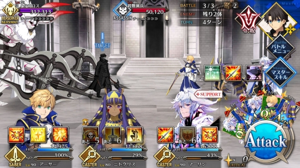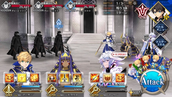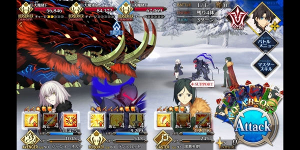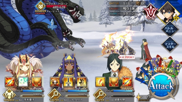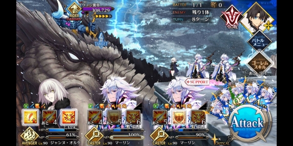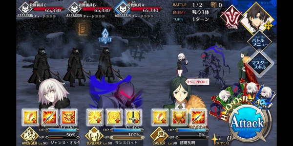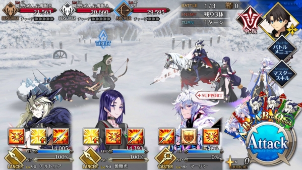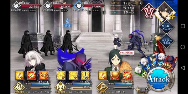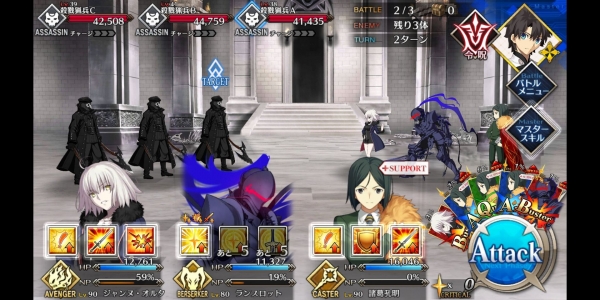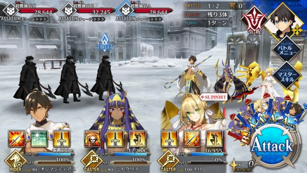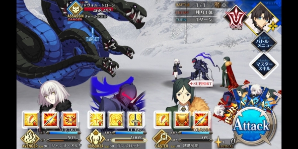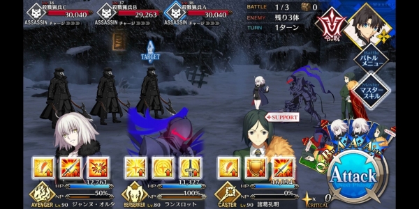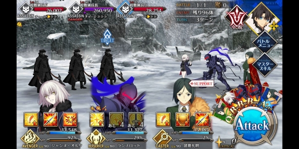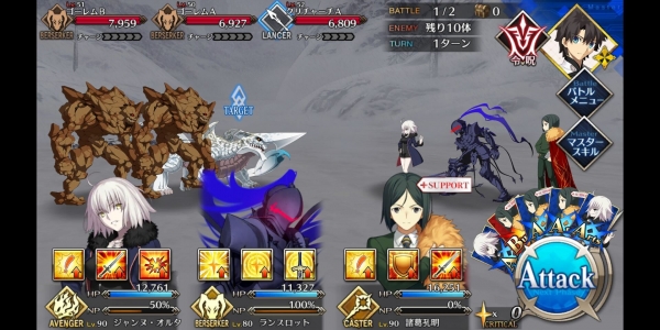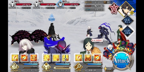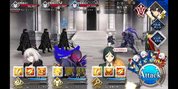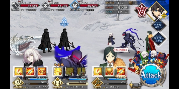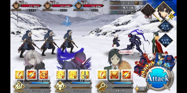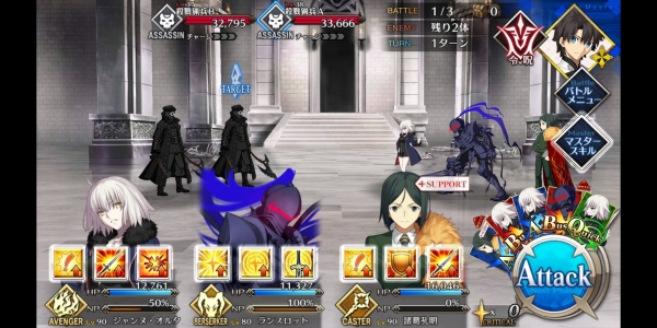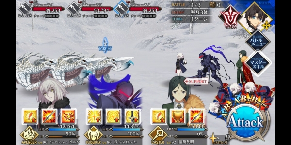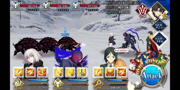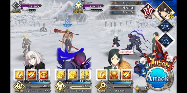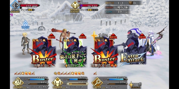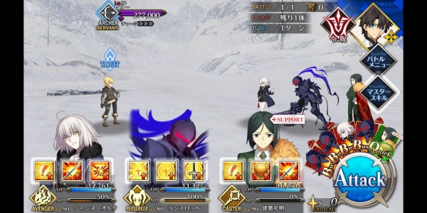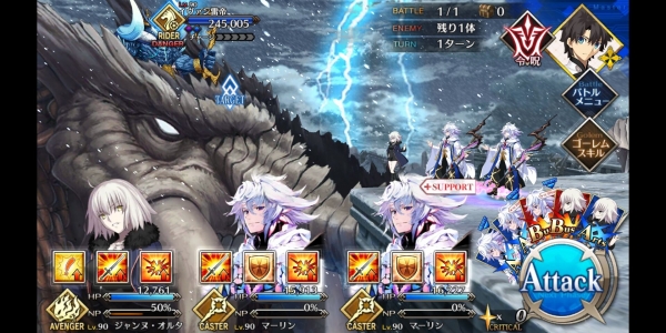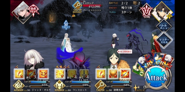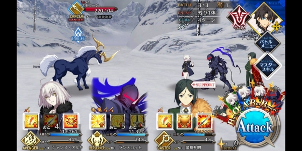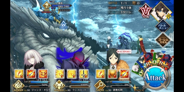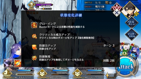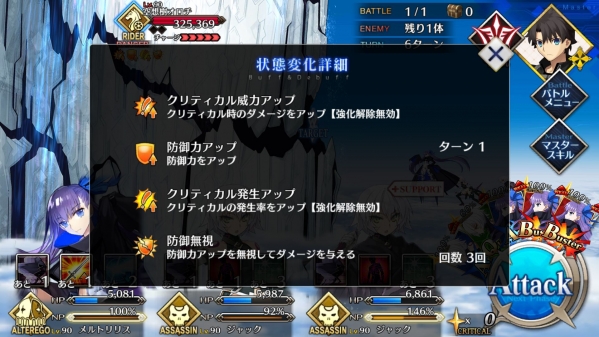 1、敌方HP减少10000&强化解除;2、玩家全体防御力提升50%(1回合);3、玩家全体回复5000HP&NP增加20%