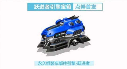 跃进者引擎只能通过宝箱获取,目前游戏中一个专属宝箱的价格为350点券,通过目前玩家开启宝箱的情况来看,一般3-4组宝箱可以获得永久期限的跃进者引擎。
