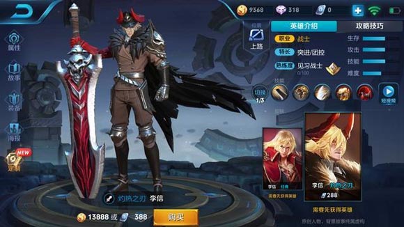 除了回城特效外,李信的相关信息也已经全部更新,该英雄正式服售价13888金币,并且拥有伴生皮肤灼热之刃,新英雄和伴生皮肤都会上架碎片商店,碎片商店也会在本周四更新。
