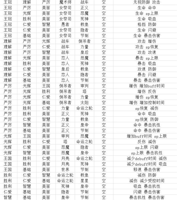 于是用excel统计了一下(三种质点属性只能激活一条组合的没有列出来)能激活两条组合的如下: