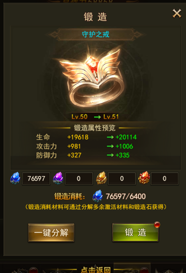 戒指分成了4个品质,最高的就是红色的戒指了,我们必须要有道具才能解锁对应的戒指。还有就是戒指一共有12个,分成了凡人之戒、矮人之戒、精灵之戒、至尊之戒。锻造和注灵可以对魔戒进行提升,提升魔戒的属性还有技能效果,锻造需要锻造石,需要很多的灵石才可以锻造,注灵也是需要灵石的。
