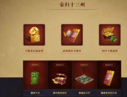 1. 在回归专服正式开启后,继承原有武将、战法等数据,再次征战十三州