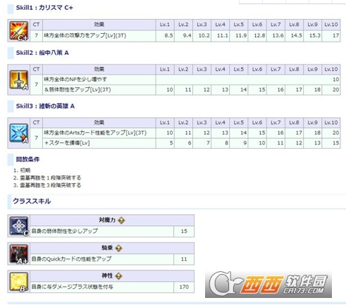 我方全体NP上升10%,异常状态抗性上升3回合(10%-20%)
