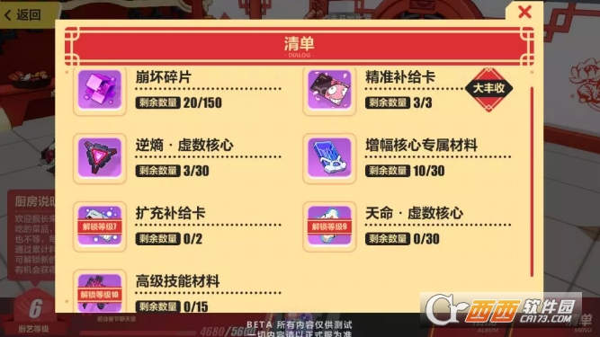 小跟班根据年夜饭制作清单统计了一下,勤劳的舰长可以获得5张补给卡、15个高级技能材料、还有大量的「增幅核心专属材料」、「天命/逆熵·虚数核心」……