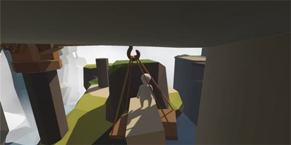 跳下吊块,可以发现一个木块的重量不足以使机关门开启足够通行的空间,接下来的常规做法是按照以上的方法再往吊块上拖放一根木桩,但是此操作难度非常大,木桩非常容易从木板上滚落。