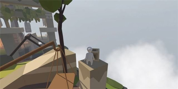先从石台爬上右侧木笼的上方,用Bob的自重将左侧木笼抬升。