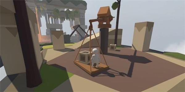 此场景内有一个可旋转的杠杆-吊板机关,和放置于高处的两个木块。