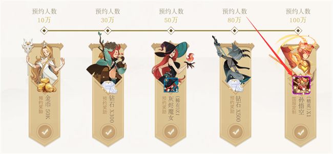1.首先国服的预约人数到达100万就可以免费的获得一张精英的孙悟空,这是第一张孙悟空,紫色进阶的需要两张孙悟空。