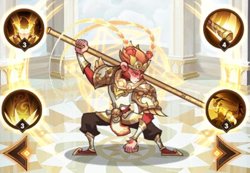 使用金箍棒砸向敌人,造成直线AOE伤害,对于较远敌人会使用筋斗云快速接近敌人,并造成额外8%最大生命伤害。这是孙悟空的主要输出技能,伤害加成一般,但有小规模AOE的加持,所以整体上中规中矩,主要是联动一号技能能打出不错效果。
