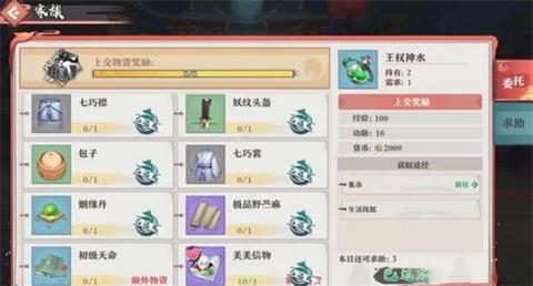 家族物资活动就是给系统提交物品,各种品阶的物品都有需求,基本上前面8个都可以收集到,如果没有的话可以通过集市购买提交,普通提交的物品,提交后获得10功勋,全部提交完获得80功勋。