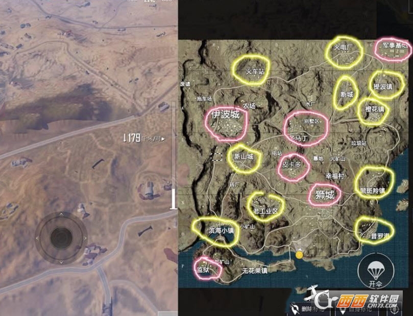 由上述两张图可以看出,沙漠这张图基本是陆地只有很小一部分处在海洋中,反正一个字就是特别大。同时资源分布点和刷车地点也非常的多,图-1的红圈是资源高产区,黄色圈则是一般资源产区。