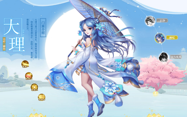 游戏中一共有六大门派供玩家们选择,分别是古墓、桃花、丐帮、密宗、大理、白陀,这些门派都是原著里存在的经典门派,大理作为治疗职业在游戏中的作用不用多说,在任何游戏里奶都是不可替代的职业,总是吃香的。但缺点就是自身输出能力差,需要强力的队友来配合,适合女性玩家。