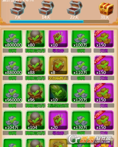 3.签到,连续签到的奖励是很丰厚的,每天记得签到,如果忘记一两天的可以用元宝补签回来,还是划算的。