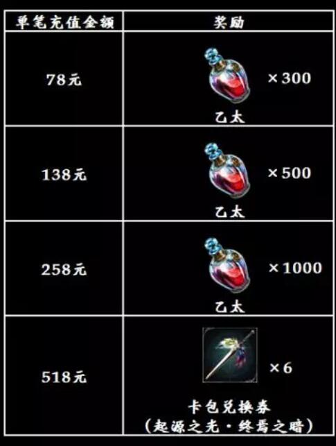 (例:每次充值518元都能获得6张卡包兑换券,但不会获得其余档位的乙太奖励)