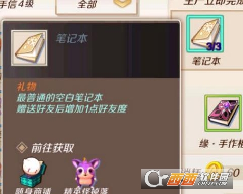 有些生产材料是不能靠采集得到的,只有靠买和刷精英怪获得【如图二笔记本】
