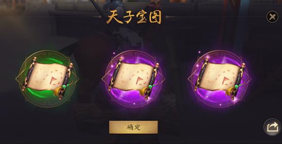 【天子宝图】:30级开启,有一定经验的挖宝玩法,每天随机获得三张宝图,紫色比绿色经验稍高,可以留到后面几天的宝图一起挖,但是为了冲级建议还是立即挖掉;紫色的宝图挖出来的东西可以抢夺,但是不会获得额外经验。