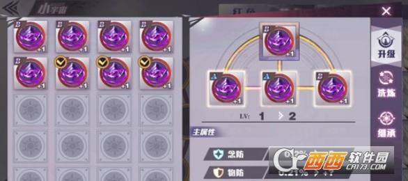 点击目标小宇宙选择强化,可以对小宇宙进行升级、洗练、继承等操作。同类小宇宙可以作为升级所需的材料。当圣斗士全身镶嵌满小宇宙且小宇宙都达到三级时,可开启小宇宙套装属性,大幅度加强圣斗士能力。