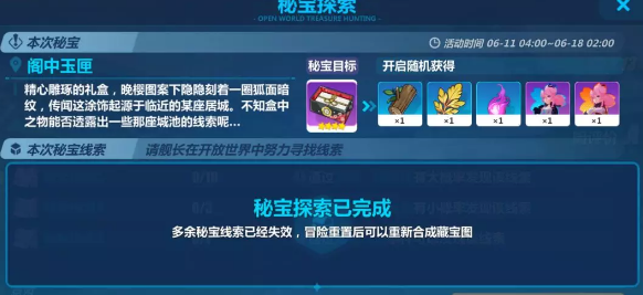这样就完成了秘宝探索任务,获得15个阁中玉匣。