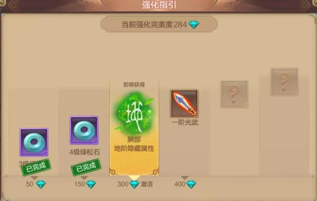 装备每一级的强化属性的2%都会换算成装备强化的钻石数*1,也就是每件装备的前4级属性都强化满,总的强化钻石数量就能达到200钻。但是,每个宝宝应该都会有像武器一样的几件装备会强化到比较高的等级,而且强化7-12级消耗的是元宝,这样也就分担了强化满级的压力。