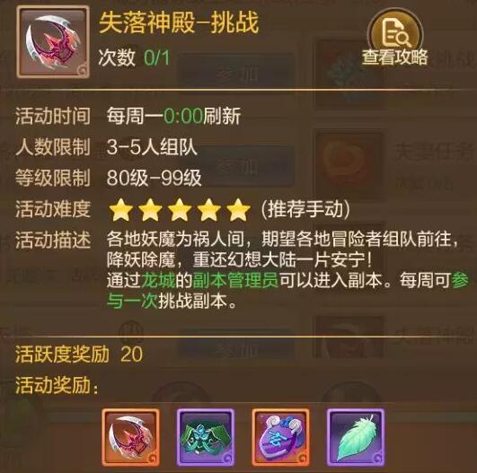 1.完成1次失落神殿挑战难度