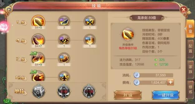 技能的强化任务需要的只是银币,想起69级的时候,每个技能强化都还只要4000多的银币,但是现在强化一个技能就要近4万银币,一共9个非绝技技能。。emm,感觉每升一级都压力满满!