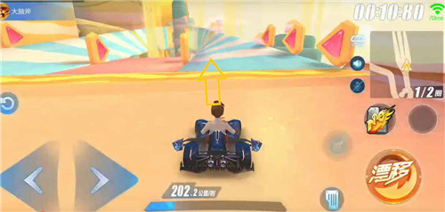普通赛道是一个大U型弯,捷径可平跑通过。通过近道可以提升150%的过图速度,收益较大。在到达近道前的一个弯道漂移时容易与两侧墙角发生碰撞,大家更应注意漂移的时机和角度。
