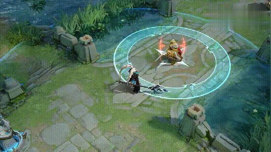 大招【魔神降世】,整个换呈现出蓝色光芒的法阵,吕布跳入其中,和入场动画有异曲同工的意思。