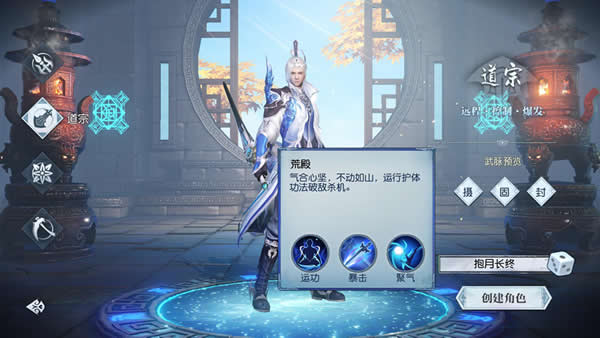道宗一派擅长远程攻击,以应接不暇的剑气将敌人逼至绝境。他们的很多技能还带有控制效果,进可攻、退可守。常年生活在不食人间烟火的静谷之中的他们,早已练就了一身好身法。