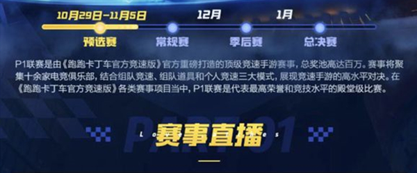 对于跑跑卡丁车手游p1联赛赛程时间表,有许多小伙伴并不是很了解,下面我们来详细介绍一下跑跑卡丁车手游p1联赛赛程时间表一览,有兴趣的小伙伴一起来看看吧。