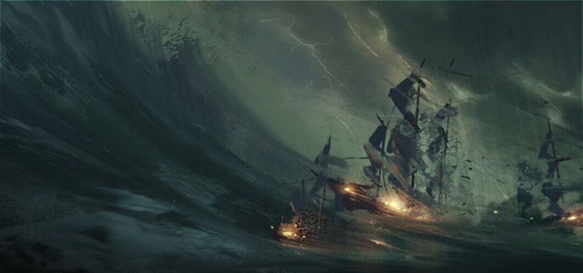 然而海上出现了无穷尽的暴风雨,试图吞噬这支队伍。桅杆断裂,船舱进水。